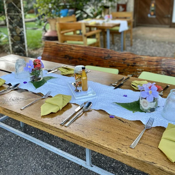 We are proud to offer healthy foods raised and grown on our property at El Castillo, including home raised pork, herbs and vegetables. We offer an assortment of seasonal fruit drinks, made with fruits from our garden. Fresh seafood, vegetarian and vegan options are also available.